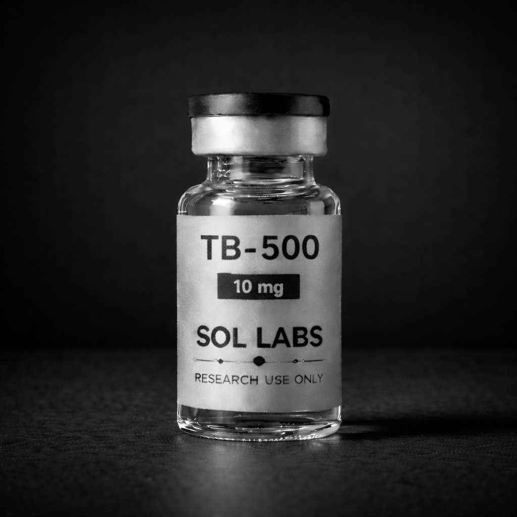 TB-500 is a synthetic research peptide modeled after Thymosin Beta-4, a naturally occurring actin-binding protein present in most human and animal cells. It is studied in laboratory settings for its role in cytoskeletal regulation, cellular migration, angiogenesis signaling, and tissue repair pathways.
